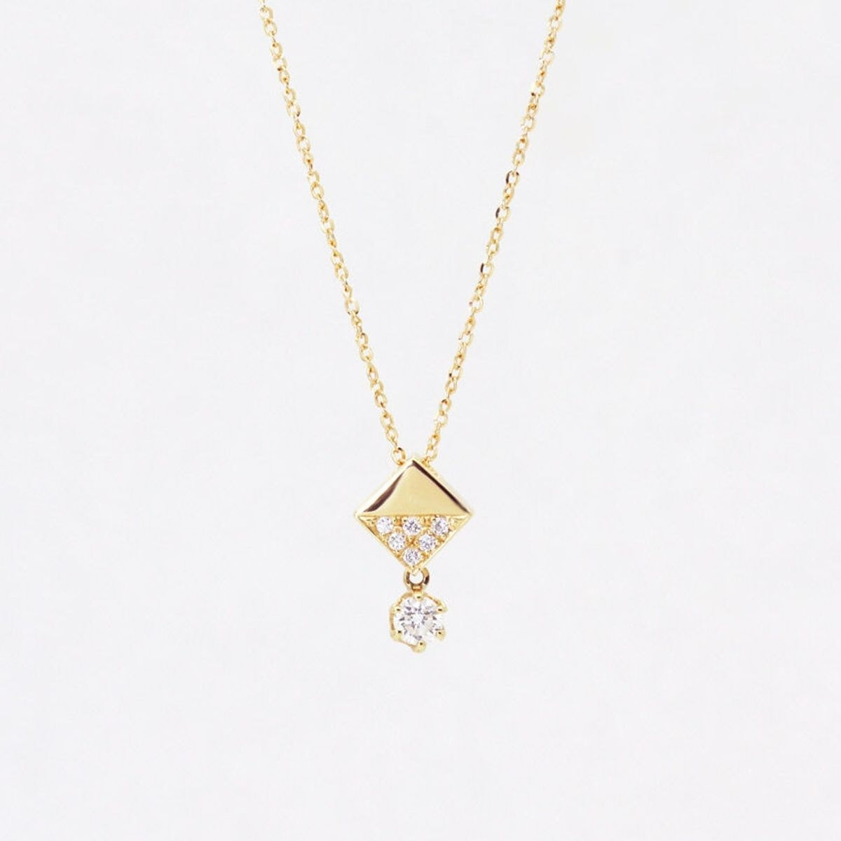 【Diamante】(ディアマンテ)はイタリア語ではひし形を、英語ではダイヤモンドを意味します。シンプルながらもダイヤモンドの美しさを引き立てた、スタイリッシュなペンダントネックレスです。
