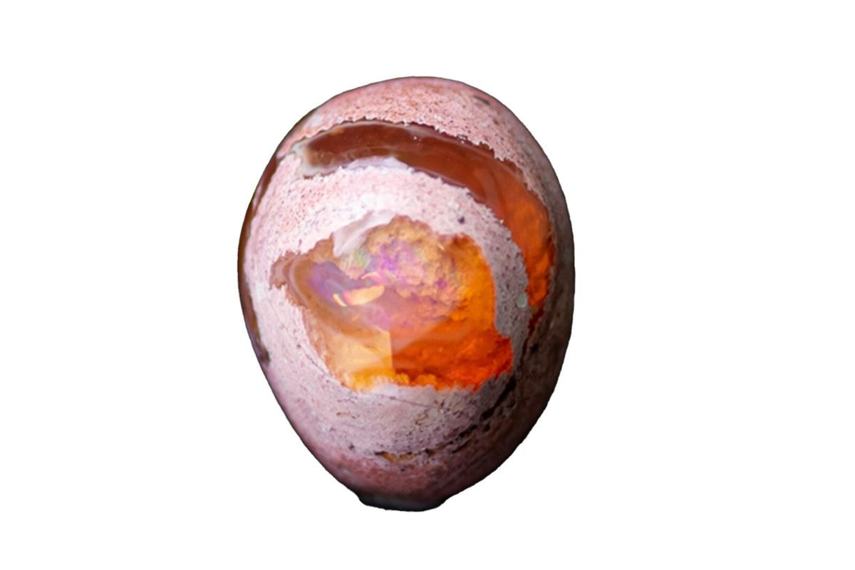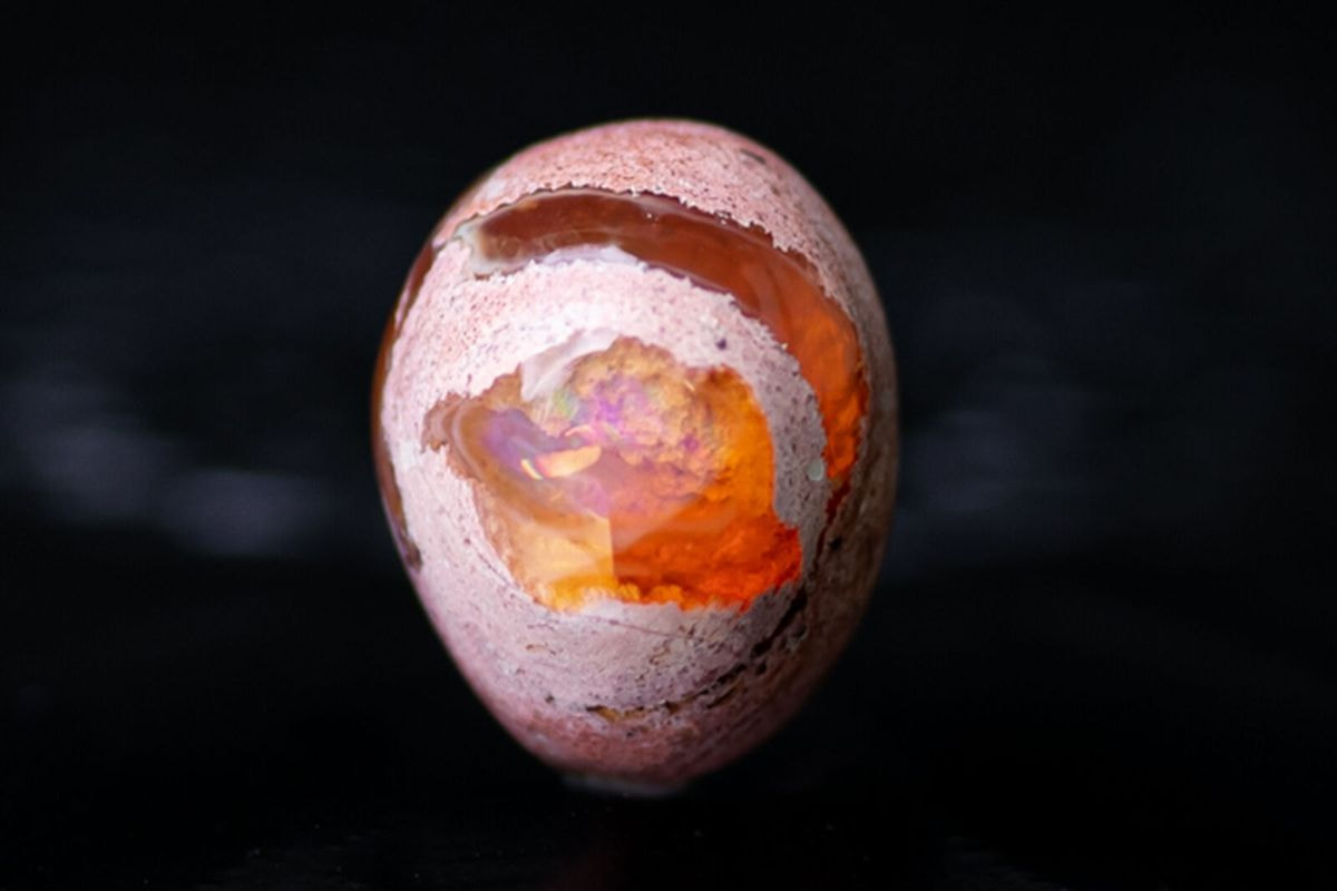 カンテラオパール(Cantera Opal)とも呼ばれるメキシコ産の母岩付き遊色オパール。豊かな彩りの美しさと大地を感じる母岩から自然が生み出した芸術作品のようです。 人によって恐竜の卵のように見えたり、洞窟のように見えたりと、ひとつとして同じものがないのも魅力です。 こちらは大地の力強さの中に優しさも感じる色味の母岩に、海に映る夕焼けのようなオレンジ色が心を温かくしてくれる逸石です。