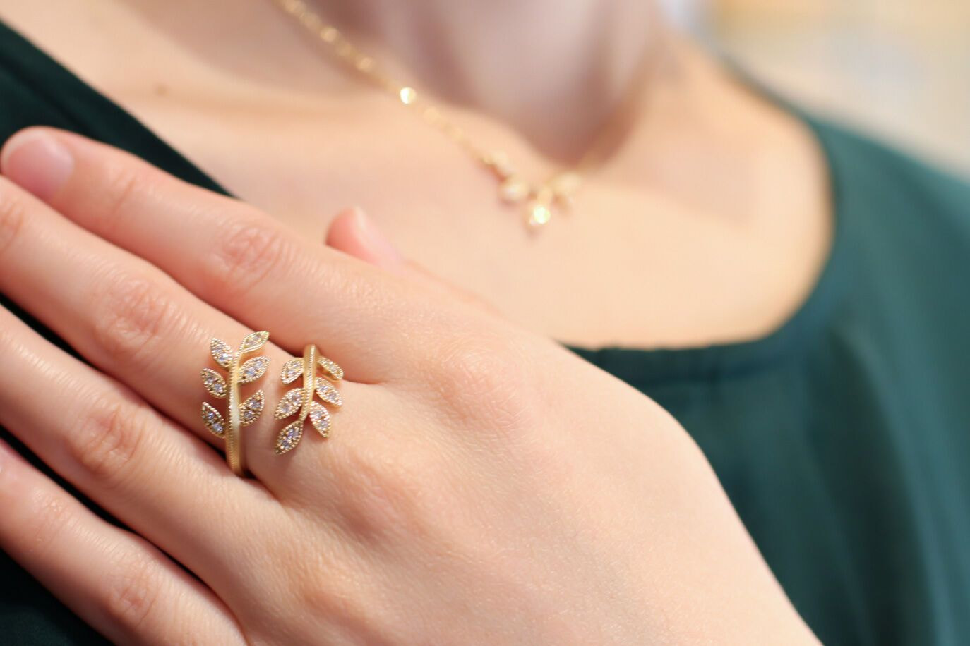 指輪の輪が繋がっていない「オープンリング」は、今非常に人気の高いデザインです。