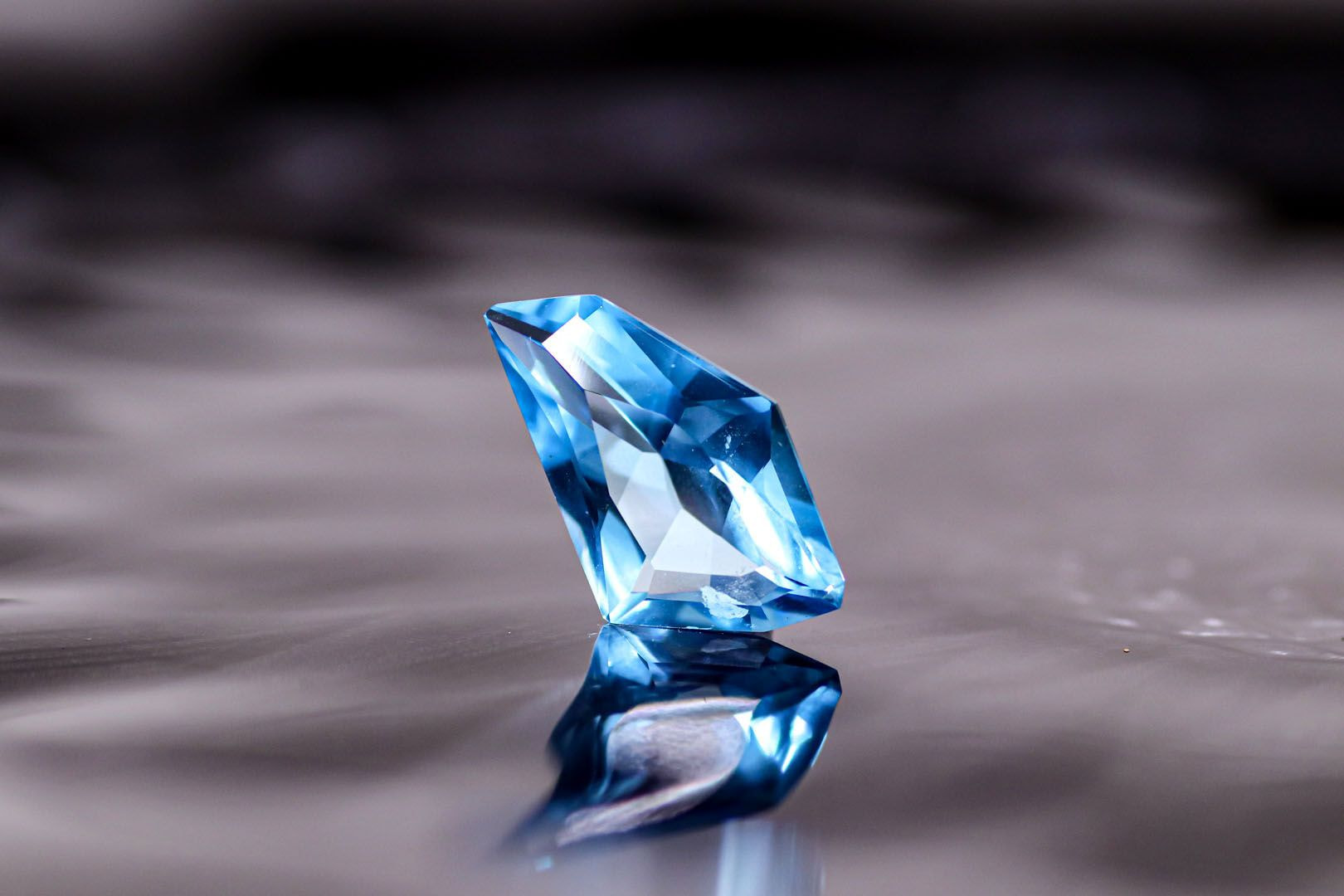 一方で、ブルートパーズはその透明感あふれる美しい青色が特徴です。色のバリエーションとしては、淡いスカイブルーから深いロンドンブルー、その間のスイスブルーまで幅広く、青の美しさを堪能できる宝石です。