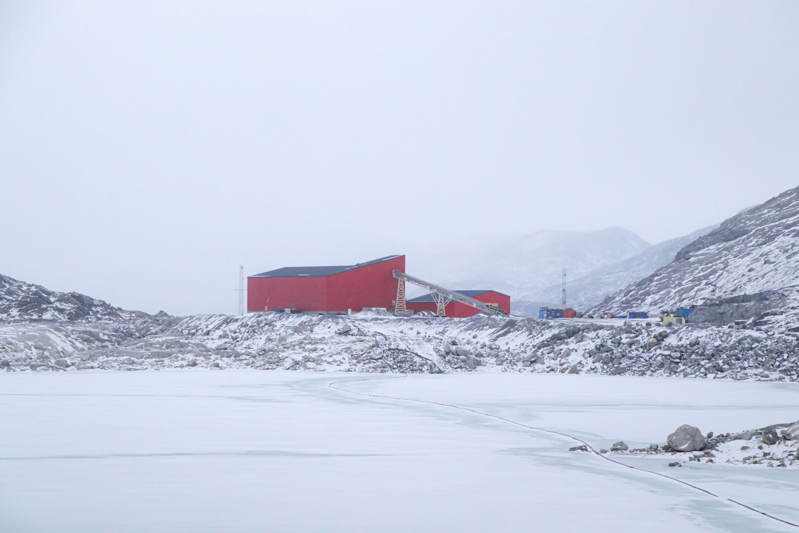 宝石鉱山の多くは太陽に照らされた泥や土のイメージですが、ここでは風景もスタッフの衣服もまるでスキー場。眼前に広がるのは雪と氷、そしてごつごつした岩ばかり。採掘のために運び込まれた色とりどりの重機が並ぶ光景です。