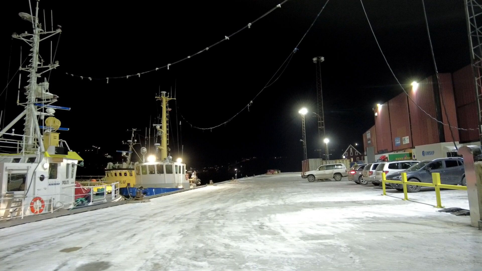 グリーンランドルビーの鉱山アッパルトックへ私たちが行く方法は唯一船での航路のみ。まだ日が昇る前の真っ暗な中出発です。ライトによって雪が張り付いた地面は昼のように反射して眩しいのですが、その先に広がる海は真っ暗。緊張と共に忘れらない光景です。