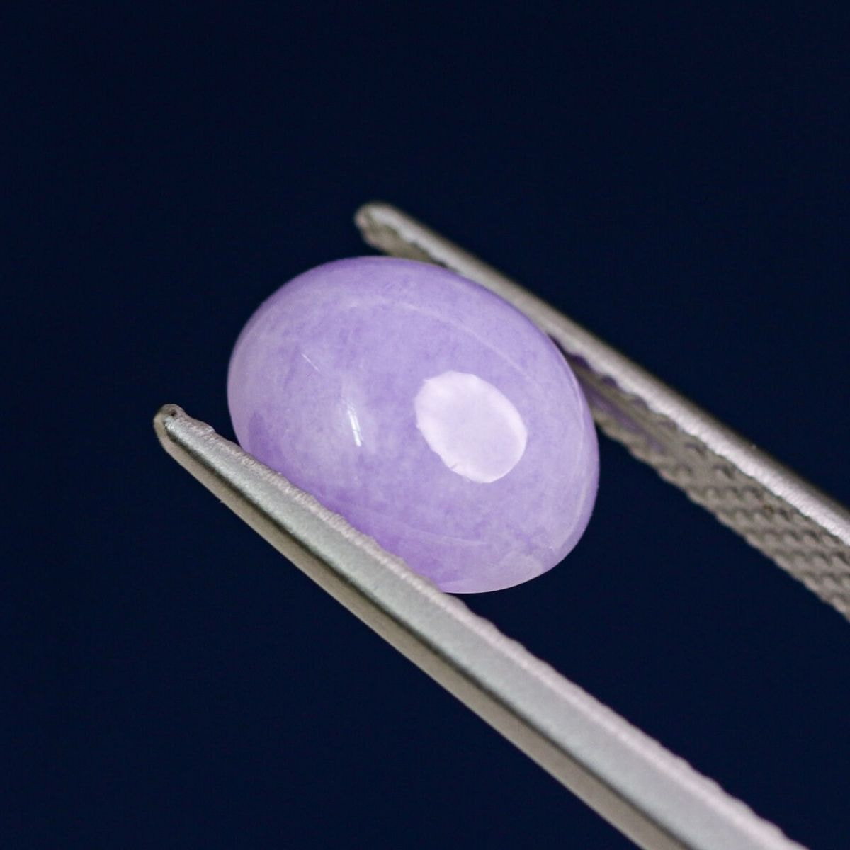翡翠といえば、緑色をまず思い浮かべる方が多いと思います。 でも、実は翡翠には、こんなに可愛くて美しいラベンダーカラーがあるんです。 色ムラも少なく、艶やかで グレー味のない、パッと明るく色の濃い美しいラベンダーカラーは、同じラベンダー翡翠の中でも価値が高く、最近では非常に少なくなっています。 和洋問わずコーディネート出来るマット加工を施したイエローゴールドで上品にまとめるのはいかがでしょうか。